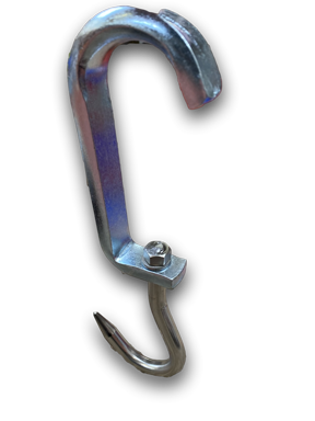 This skid meat hook is designed for use with 48 mm Swiss-style and 60 mm Euro-style tubular meat rail systems, providing smooth and reliable movement for carcase and primal handling across butcheries, chill rooms, game larders and abattoirs. The sliding skid is manufactured from 25 x 12 mm hot-dip galvanised flat steel, ensuring long service life in demanding food-industry environments.